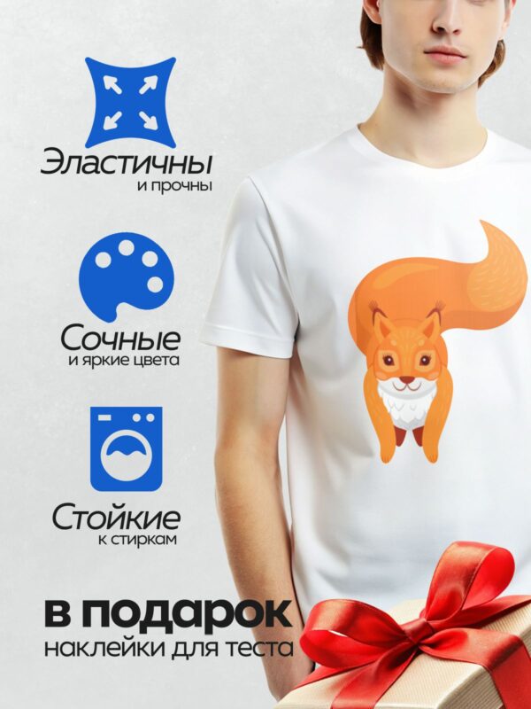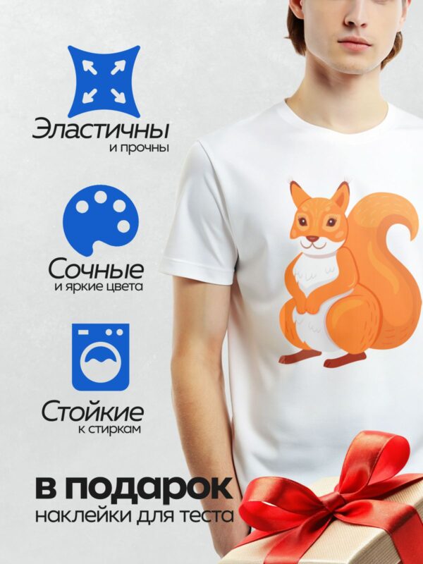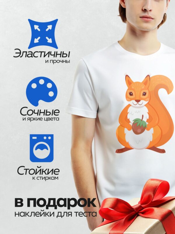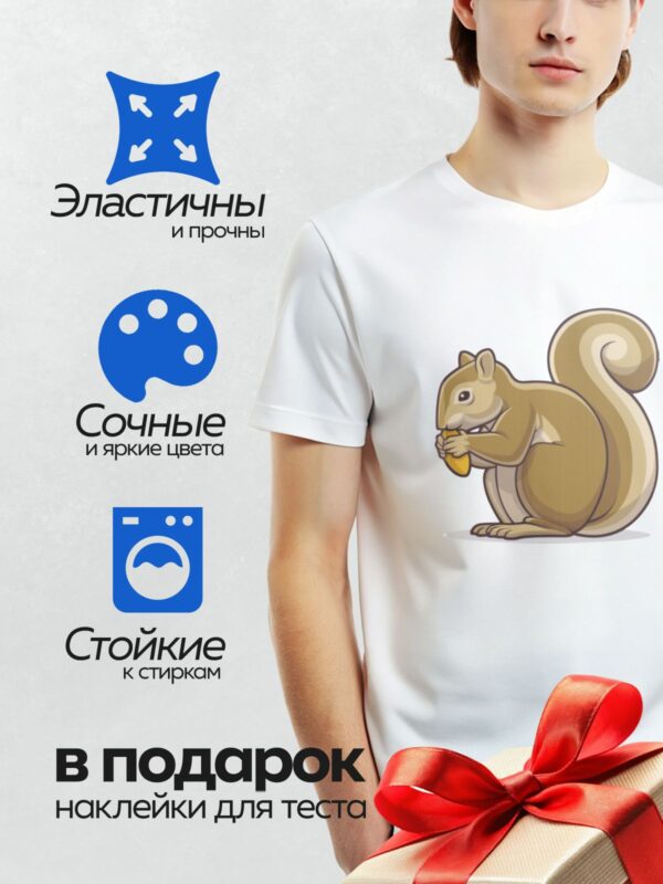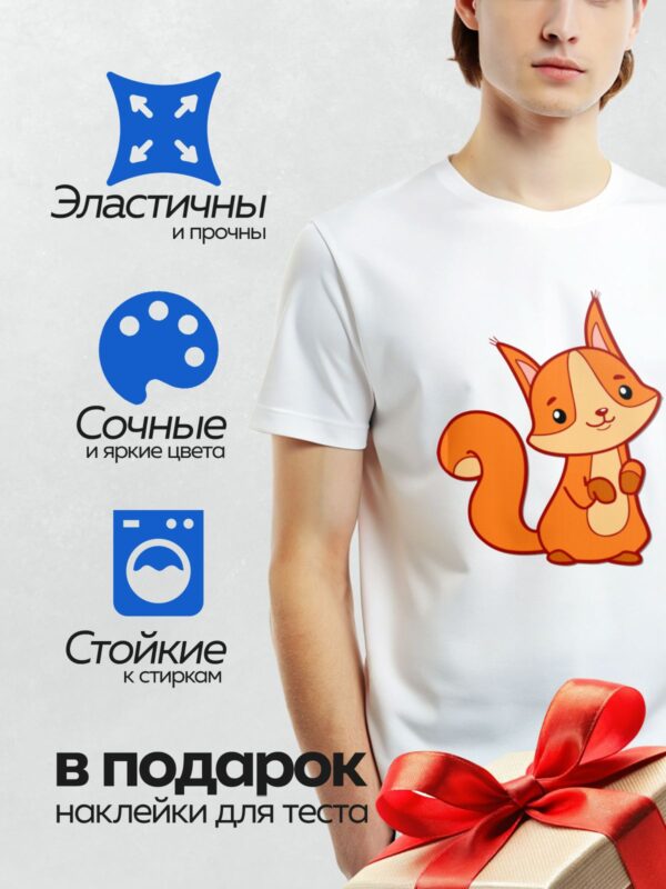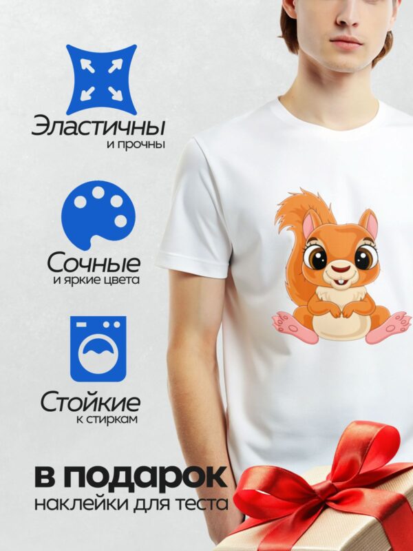 Термонаклейка на одежду DTF / Мультяшная белка с пушистым хвостом и яркими глазами.