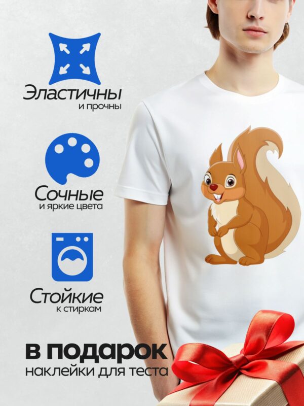 Термонаклейка на одежду DTF / Весёлая мультяшная белка с пушистым хвостом.