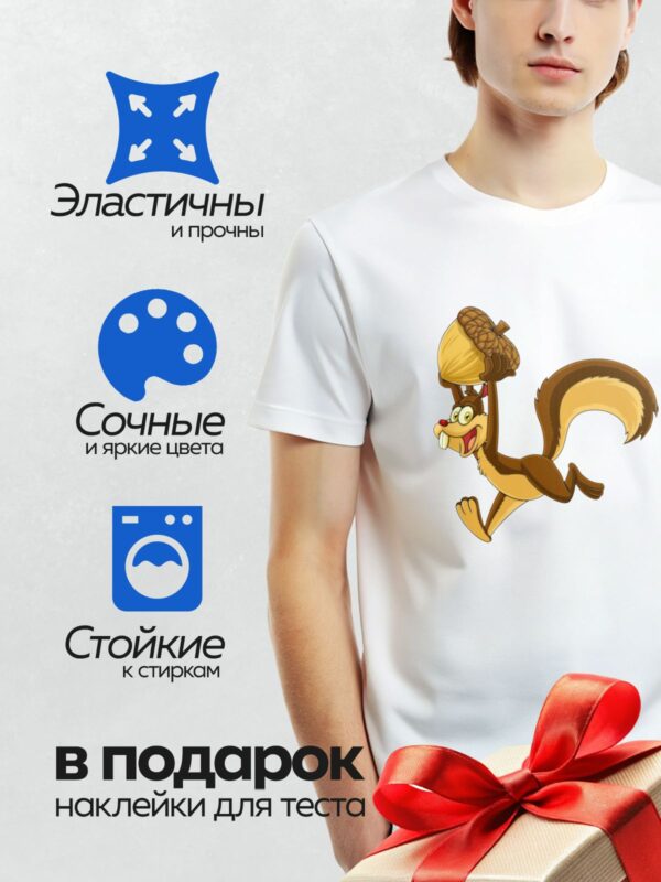 Термонаклейка на одежду DTF / Мультяшная белка держит орех в лапках.