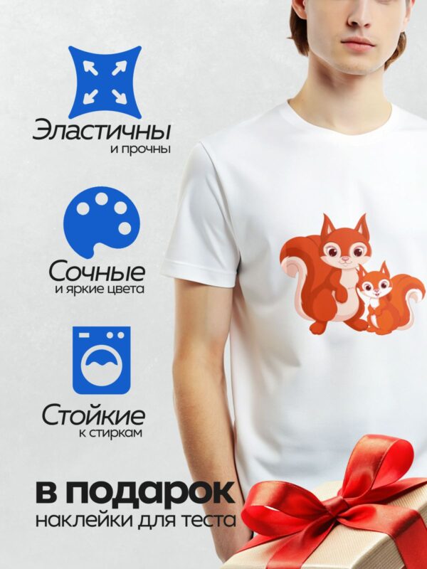 Термонаклейка на одежду DTF / Мультяшные белка-мама и бельчонок.