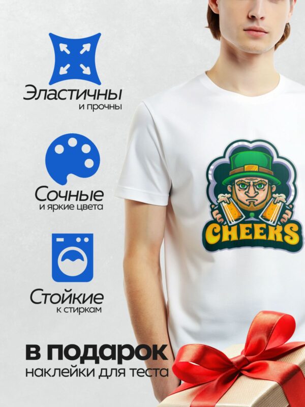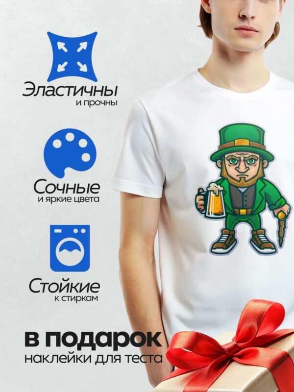 Термонаклейка на одежду DTF / Лепрекон с пивом и надписью “CHEERS”.