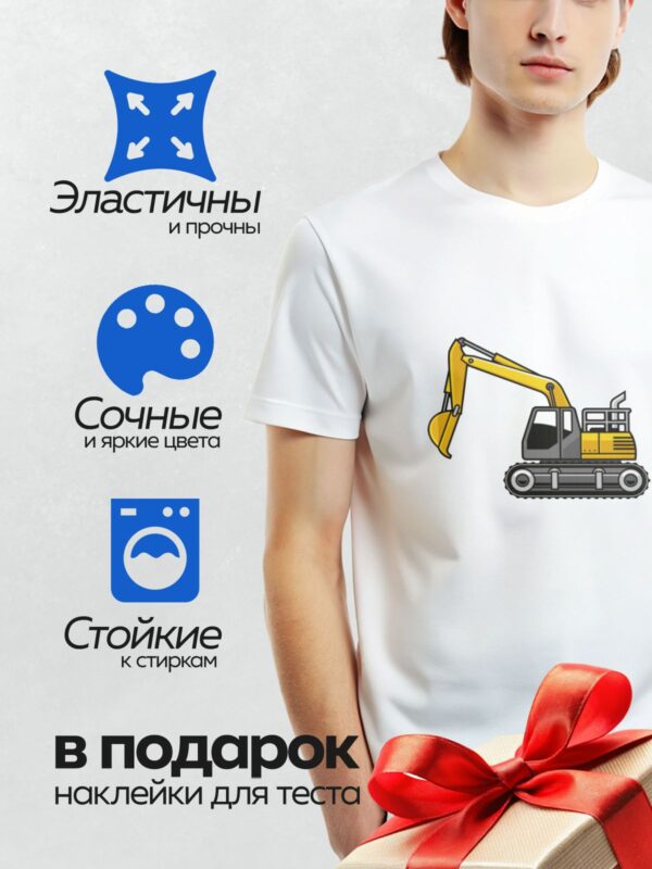 Термонаклейка на одежду DTF / Мультяшный экскаватор с ковшом и гусеницами.