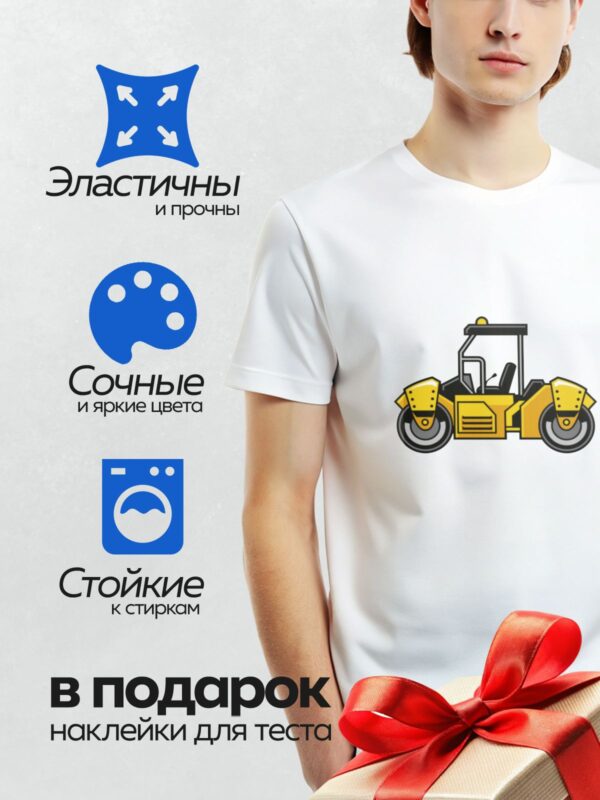 Термонаклейка на одежду DTF / Мультяшный дорожный каток с большими колесами.