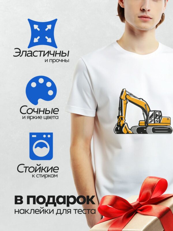 Термонаклейка на одежду DTF / Мультяшный экскаватор с ковшом и гусеницами.