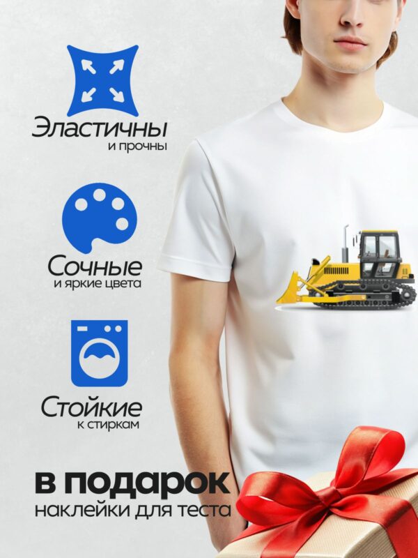 Термонаклейка на одежду DTF / Жёлтый бульдозер на гусеничном ходу.
