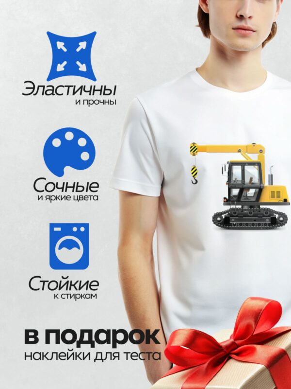 Термонаклейка на одежду DTF / Гусеничный кран с поднятой стрелой и крюком.