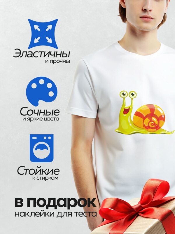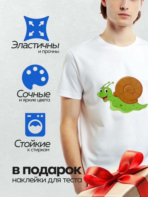 Термонаклейка на одежду DTF / Мультяшная улитка с яркой раковиной и большими глазами.
