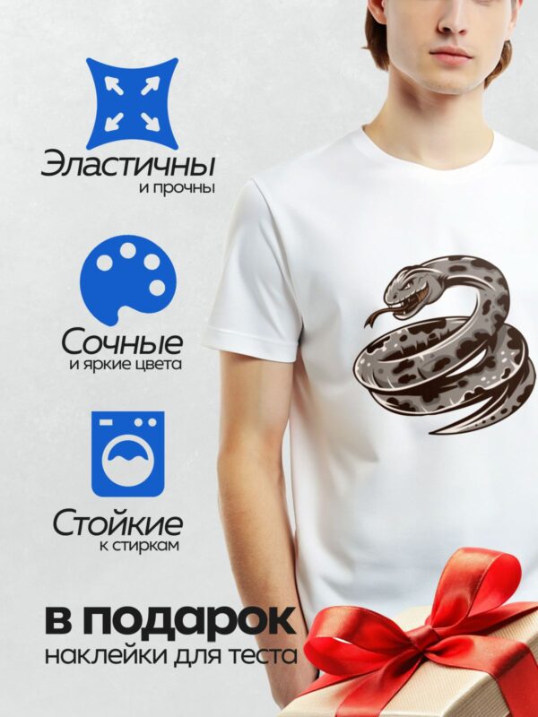 Термонаклейка на одежду DTF / Стилизованная змея с пятнами, свернувшаяся кольцом.