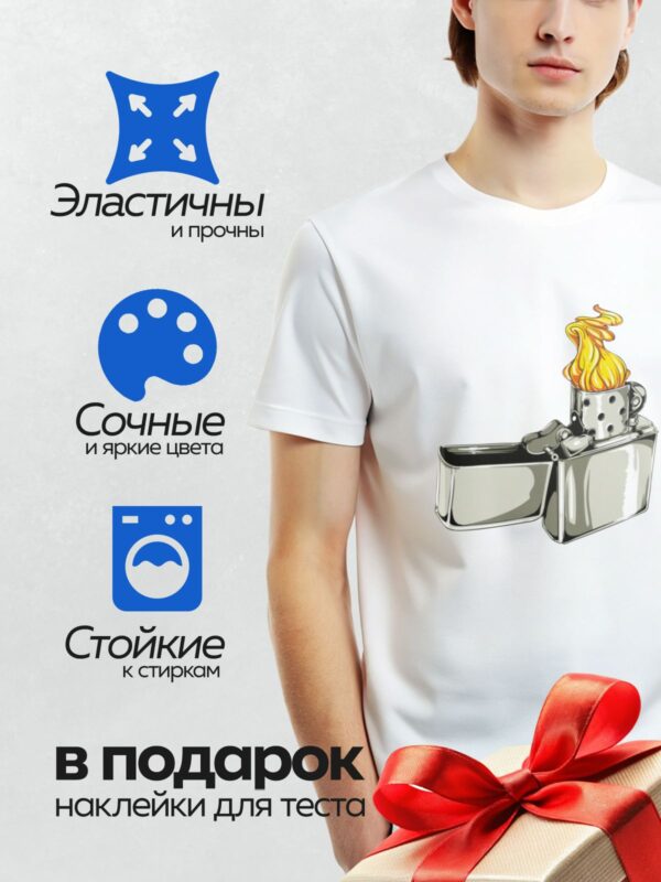 Термонаклейка на одежду DTF / Металлическая зажигалка с ярким пламенем.