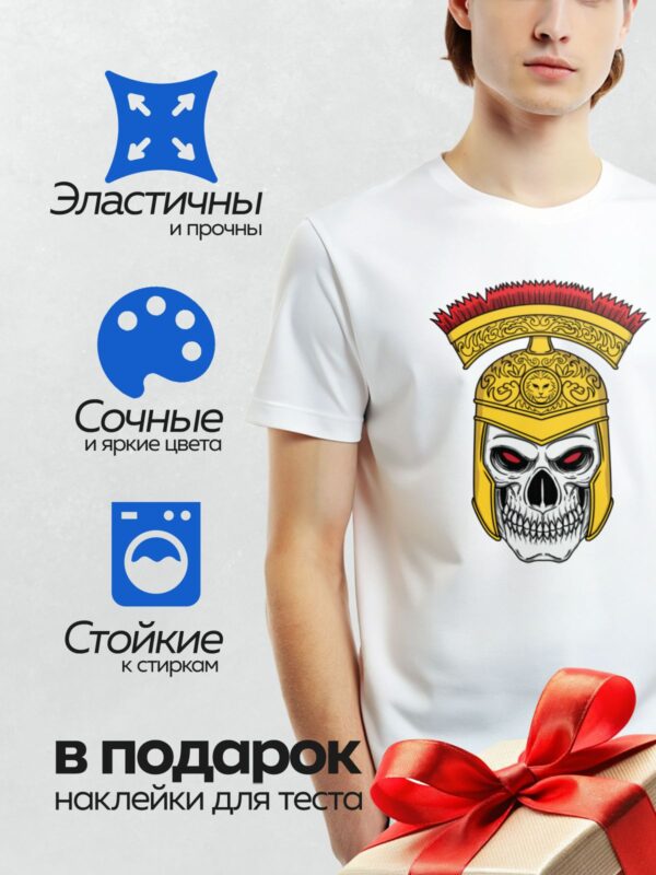 Термонаклейка на одежду DTF / Череп в римском шлеме с гребнем и львиным лицом.