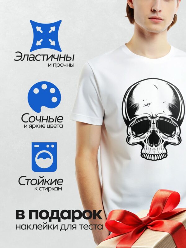 Термонаклейка на одежду DTF / Набор стилизованных черепов в разных дизайнерских решениях.
