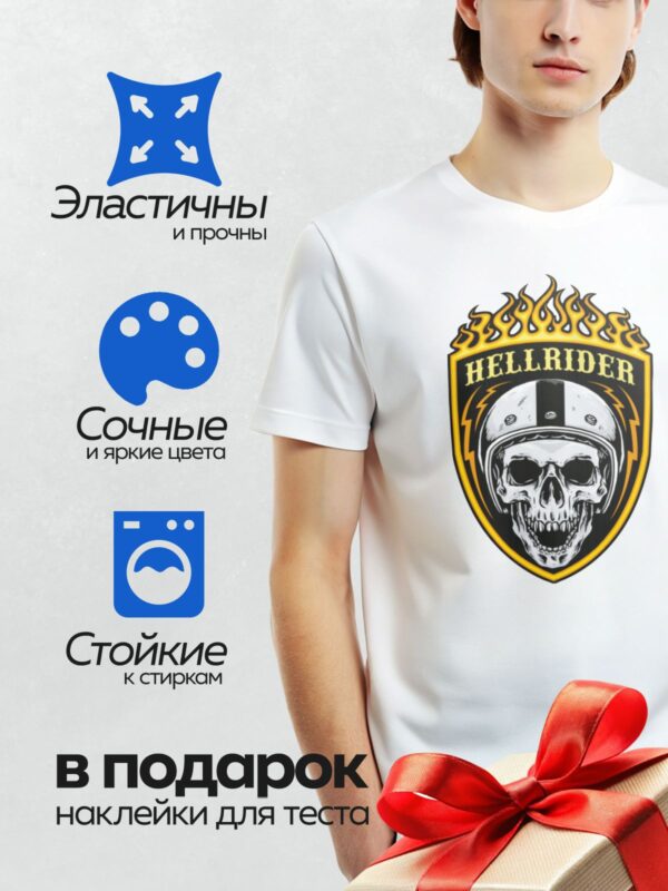 Термонаклейка на одежду DTF / Стилизованный череп в мотоциклетном шлеме.
