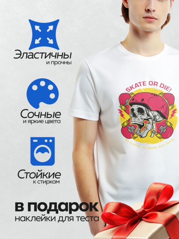 Термонаклейка на одежду DTF / Череп в красном шлеме, скейтборды, яркие цвета.
