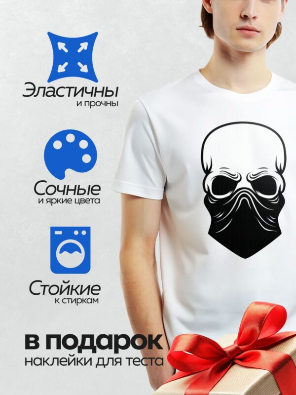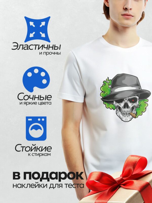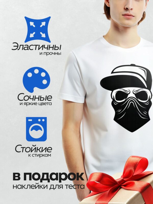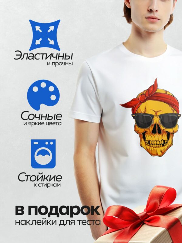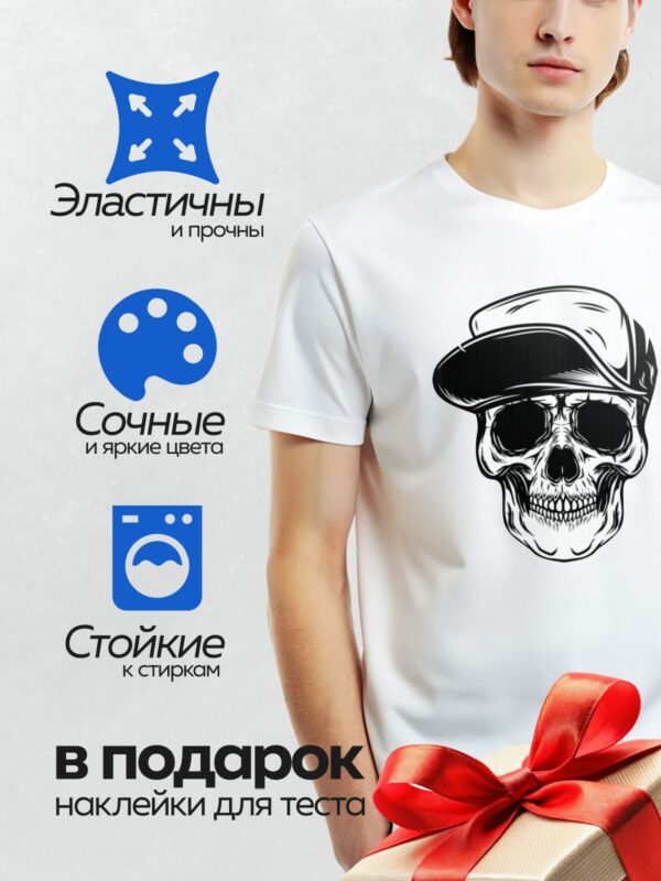 Термонаклейка на одежду DTF / Череп в кепке, бандане и стильных очках.