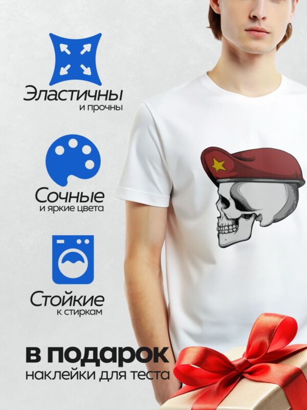 Термонаклейка на одежду DTF / Череп в красном берете с желтой звездой.