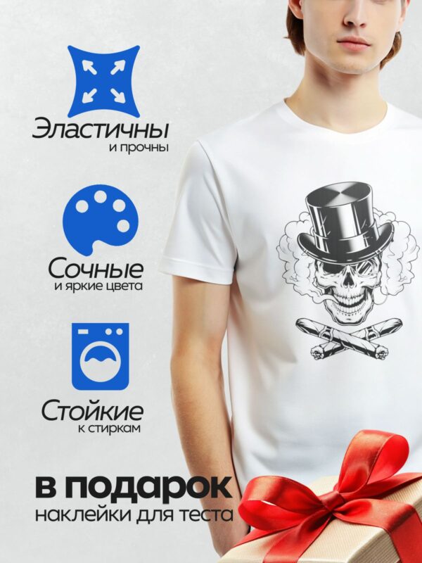 Термонаклейка на одежду DTF / Череп в цилиндре, дым, скрещенные сигары.
