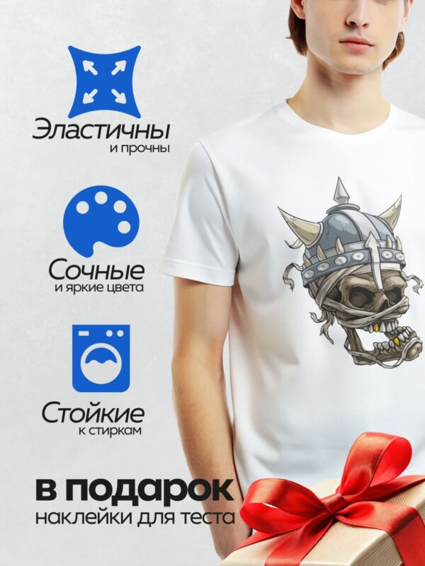 Термонаклейка на одежду DTF / Череп викинга в шлеме с рогами и бинтами.