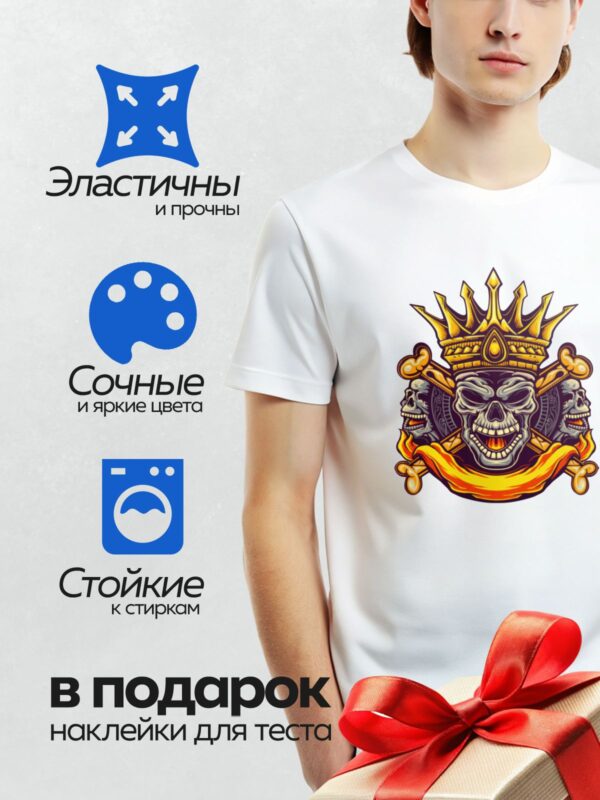 Термонаклейка на одежду DTF / Стилизованный череп в короне с перекрещенными костями.