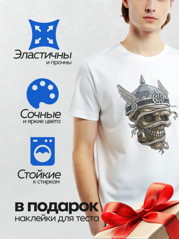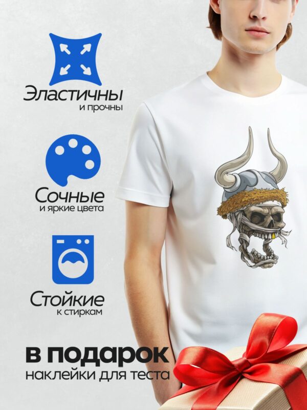 Посмотреть“Термонаклейка на одежду DTF / Череп викинга в шлеме с рогами и бинтами.” добавлен в избранное