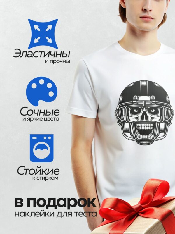 Термонаклейка на одежду DTF / Череп в американском футбольном шлеме.
