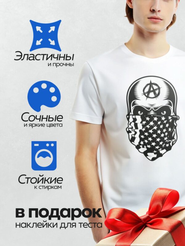 Термонаклейка на одежду DTF / Череп в бандане с флагом США и символом анархии.