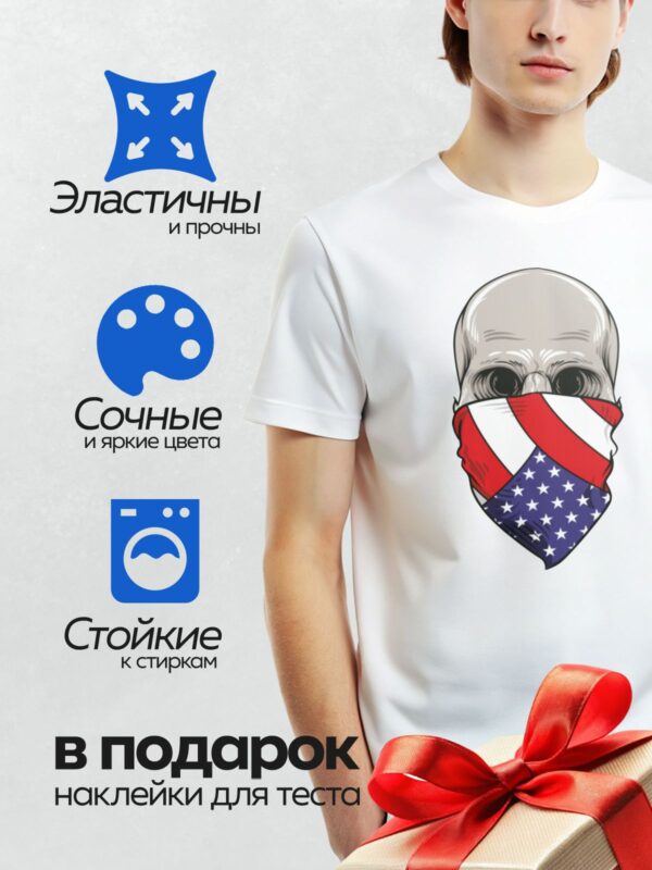 Термонаклейка на одежду DTF / Череп в бандане с узором американского флага.