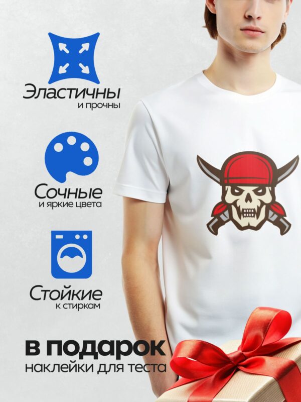 Термонаклейка на одежду DTF / Череп в красной бандане с перекрещенными саблями.