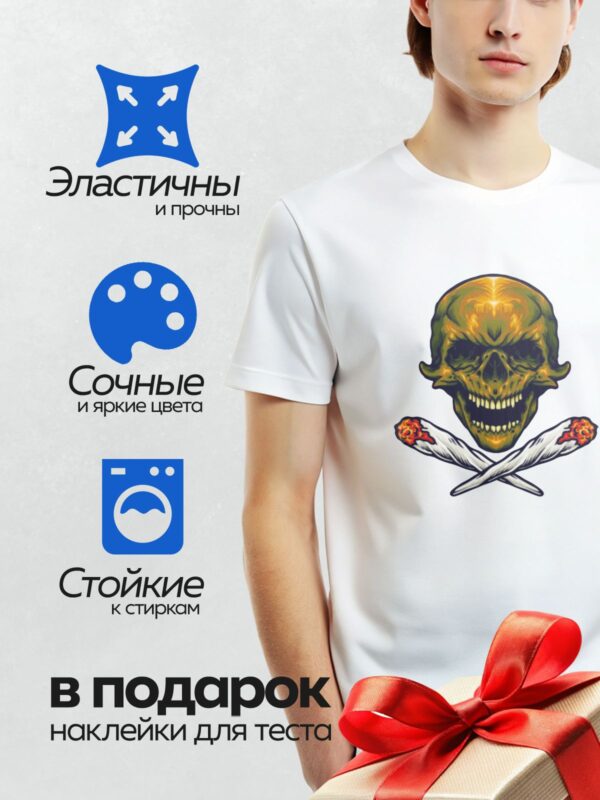 Термонаклейка на одежду DTF / Череп в каске с пулеметными патронами.