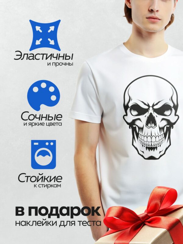 Термонаклейка на одежду DTF / Черно-белый череп с эффектом таяния.