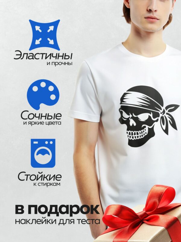 Термонаклейка на одежду DTF / Череп в черной бандане с белыми акцентами.