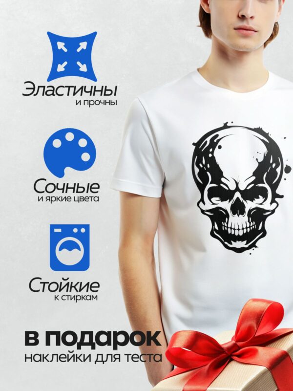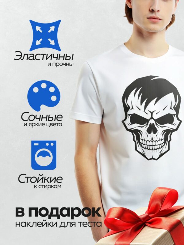 Термонаклейка на одежду DTF / Стилизованный череп в графическом стиле, черно-белый.