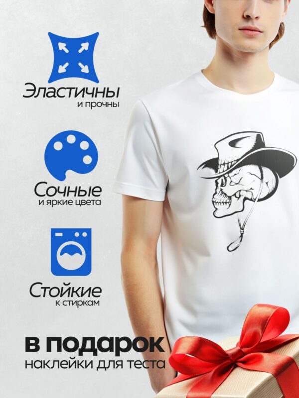 Термонаклейка на одежду DTF / Череп в ковбойской шляпе с декоративными элементами.
