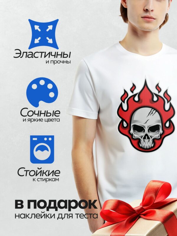 Термонаклейка на одежду DTF / Череп в огне, выполненный в графическом стиле.