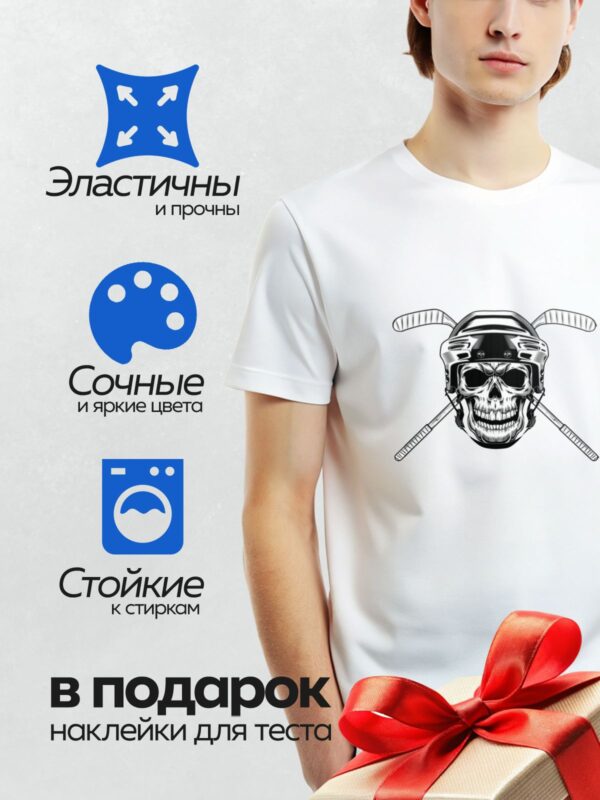 Термонаклейка на одежду DTF / Череп в хоккейном шлеме с перекрещенными клюшками.