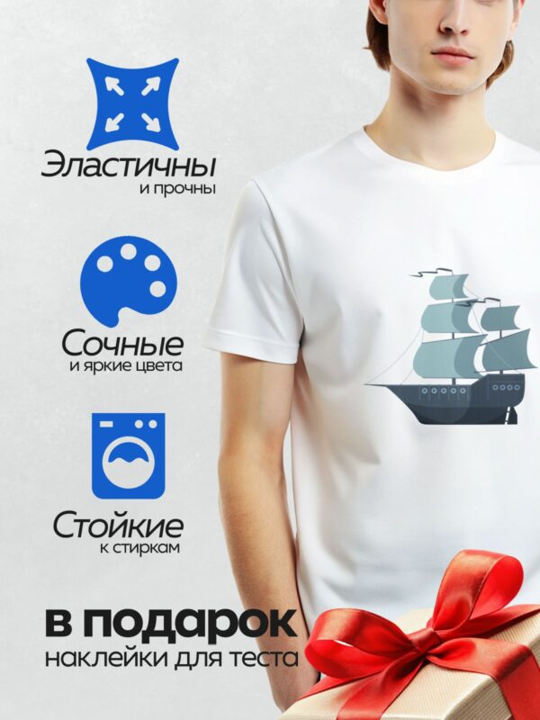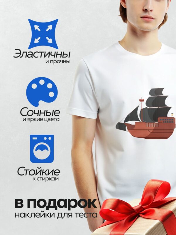 Термонаклейка на одежду DTF / Парусное судно с тремя парусами и флагом.
