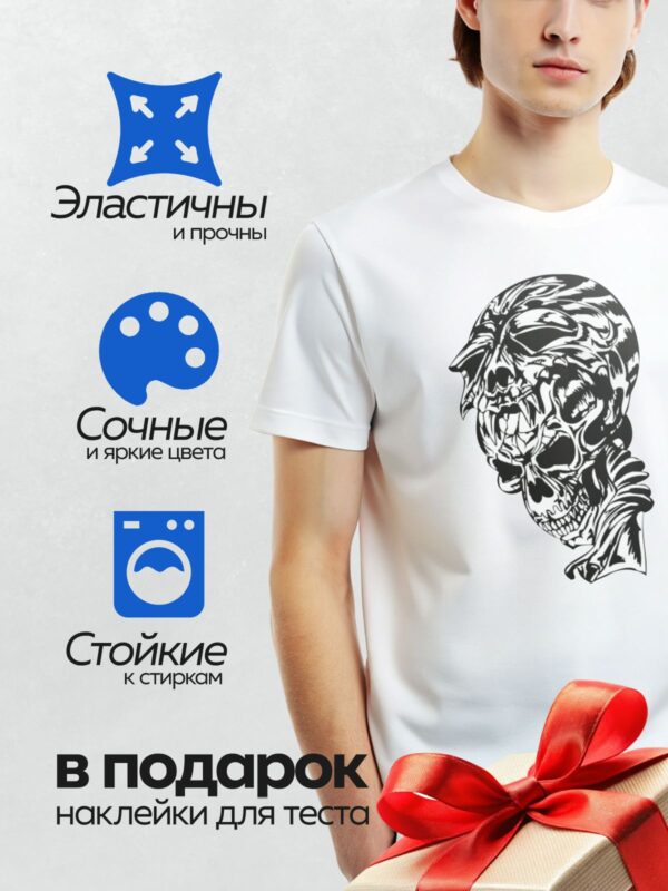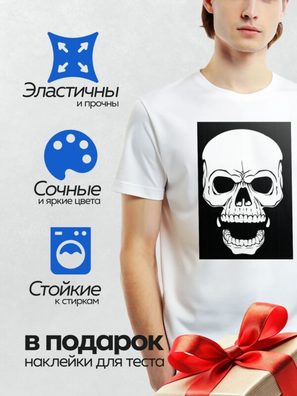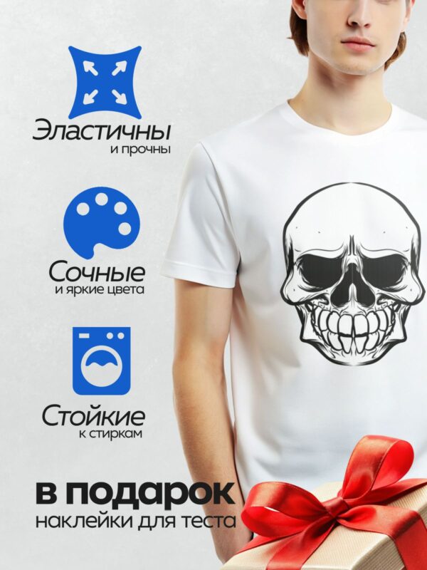 Термонаклейка на одежду DTF / Стилизованный череп с четкими линиями и контрастом.