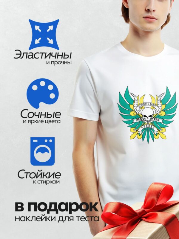 Термонаклейка на одежду DTF / Стилизованный череп с крыльями, трайбл-стиль, надпись “Stereo Dead”, цепи, надпись “Keep on praying”.