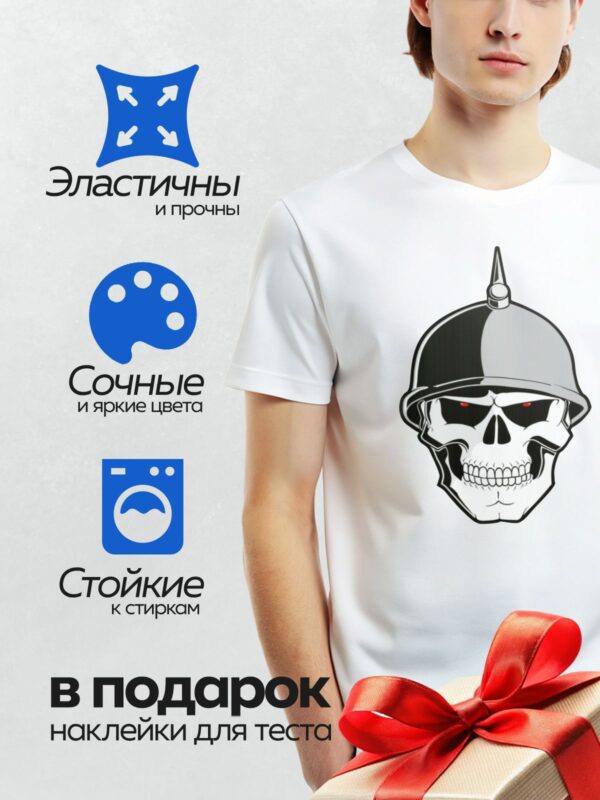 Термонаклейка на одежду DTF / Череп в военной каске с красными глазами.