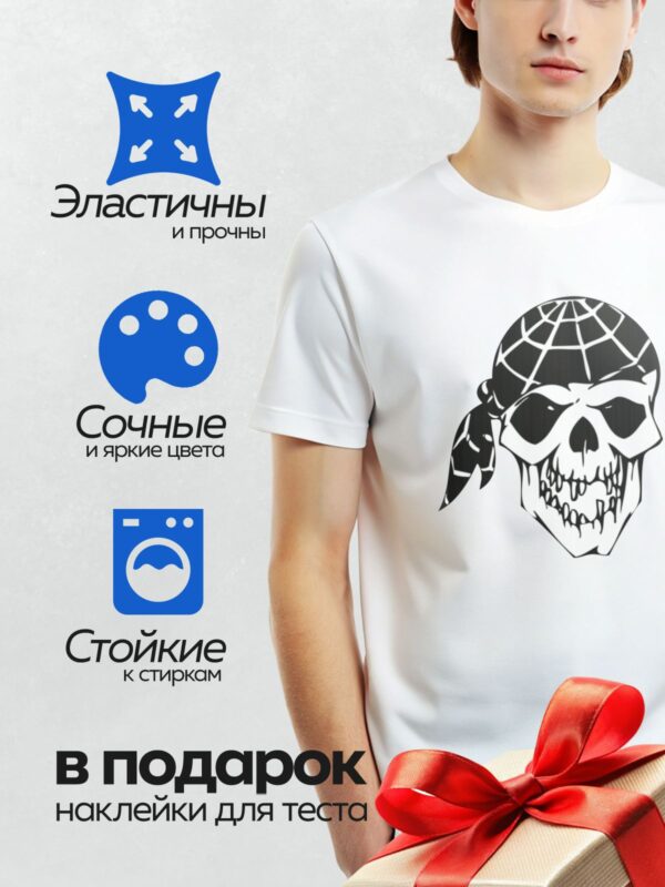 Термонаклейка на одежду DTF / Череп с мечом, стилизованный дизайн, яркие акценты.