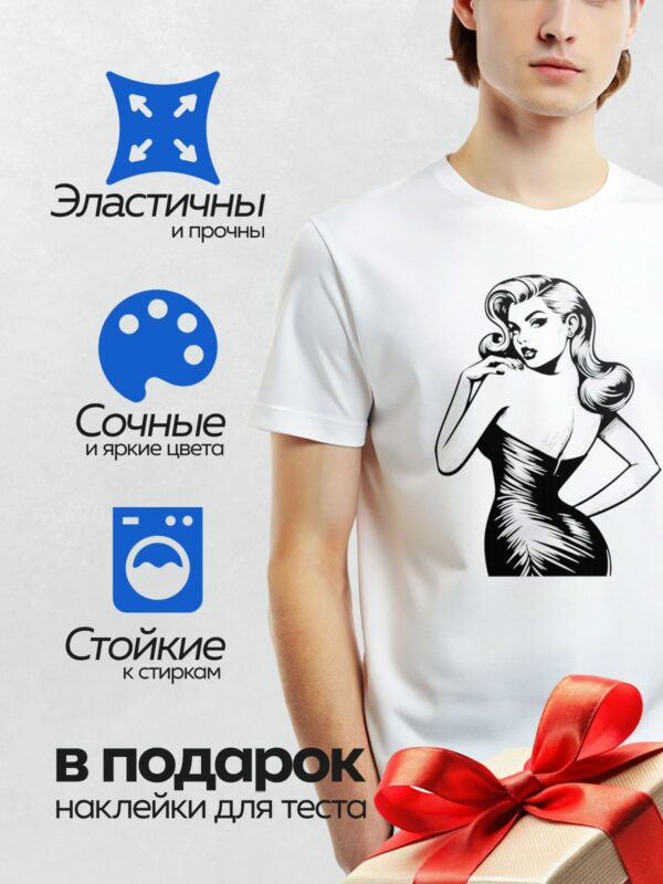 Термонаклейка на одежду DTF / Девушка в стиле пин-ап с волнистыми волосами и выразительным взглядом.