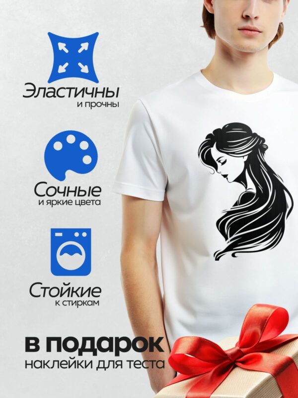 Термонаклейка на одежду DTF / Девушка с роскошными волнистыми волосами, элегантный стиль.