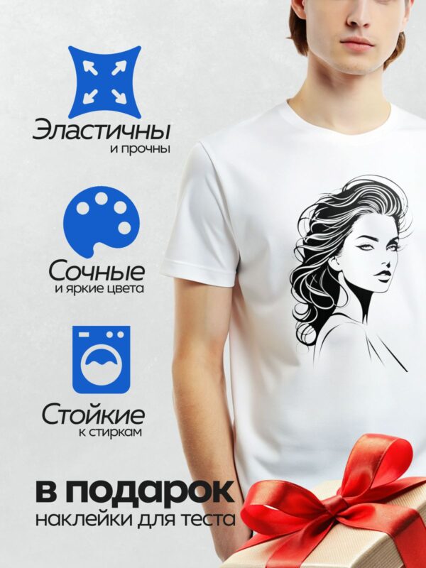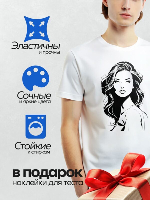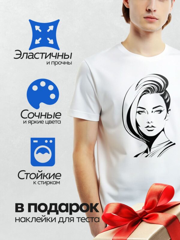 Термонаклейка на одежду DTF / Девушка с элегантной прической в минималистичном стиле.