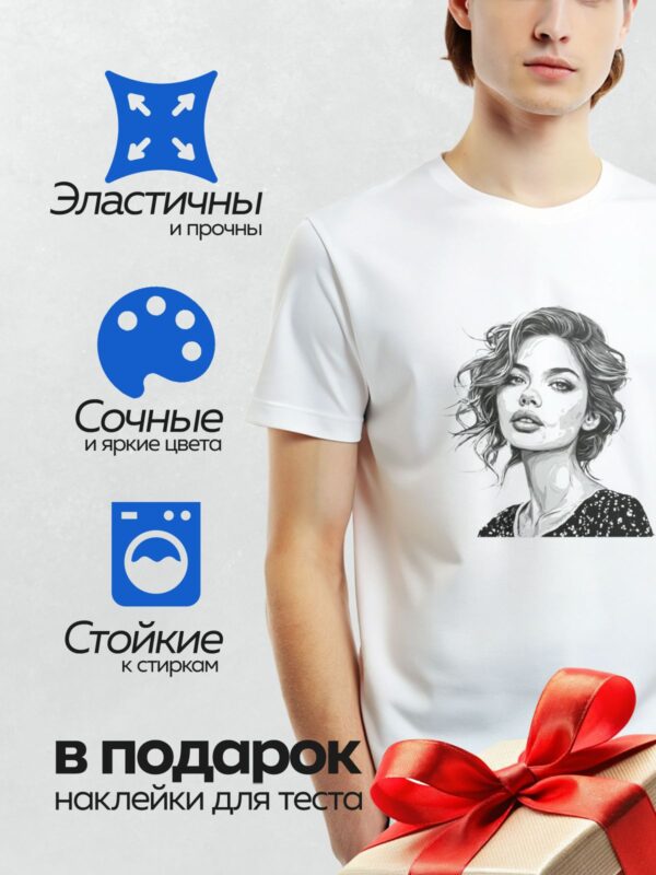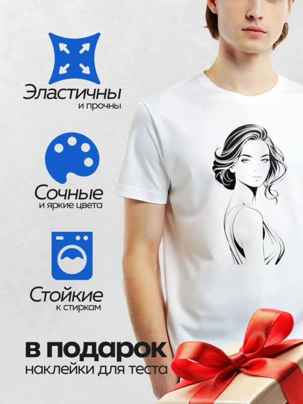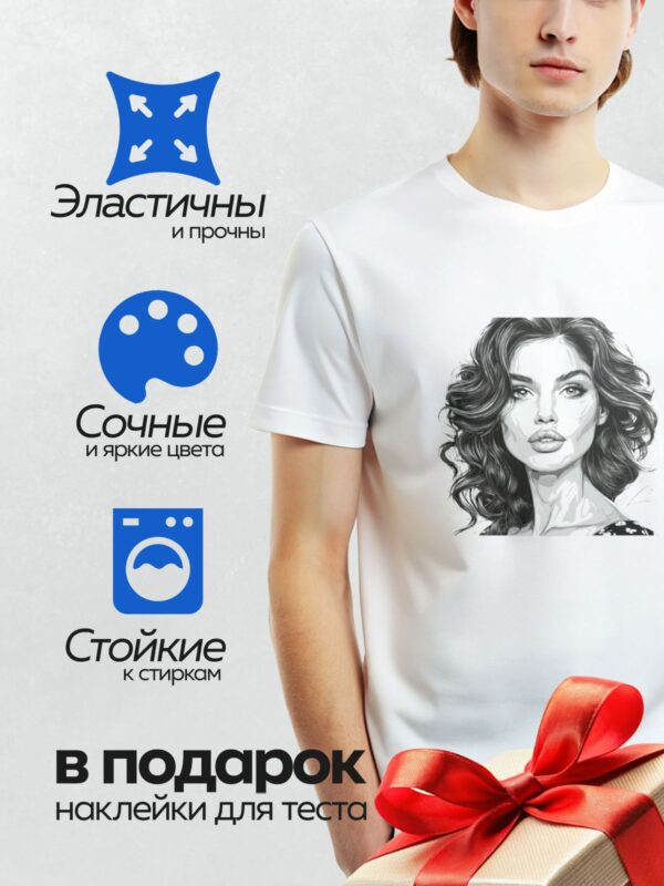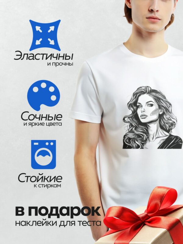 Термонаклейка на одежду DTF / Графичный портрет девушки с длинными волнистыми волосами.