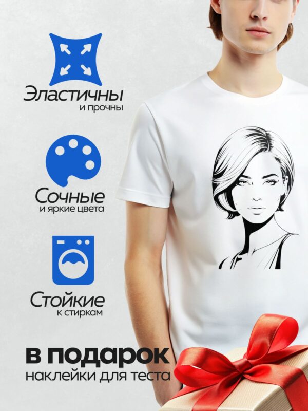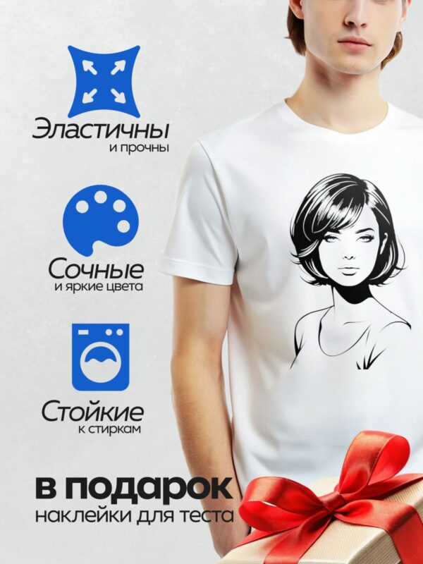 Термонаклейка на одежду DTF / Девушка с короткой стрижкой и чёлкой в стиле пин-ап.