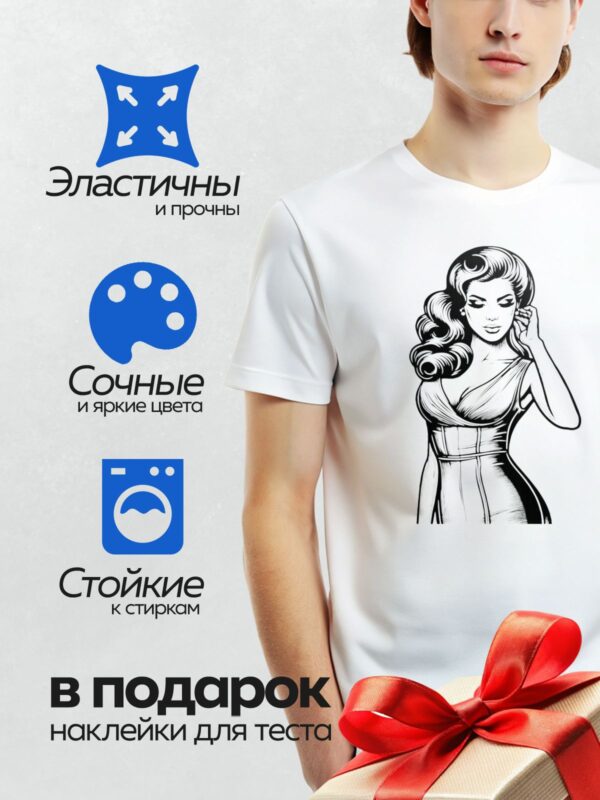 Термонаклейка на одежду DTF / Женщина в стиле пин-ап в облегающем платье.
