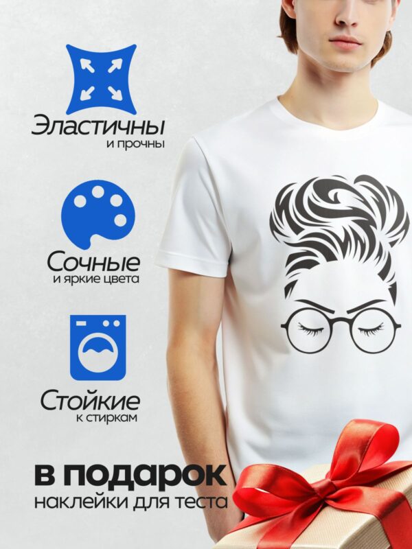 Термонаклейка на одежду DTF / Женский силуэт с очками, стилизованные волосы, черно-белое оформление.