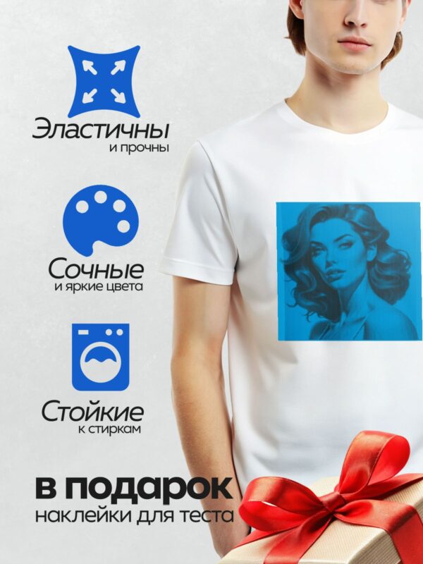 Термонаклейка на одежду DTF / Портрет женщины в стиле поп-арт, синие тона.