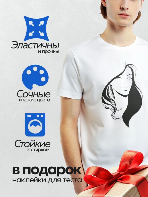Термонаклейка на одежду DTF / Контурное лицо девушки с акцентом на губы и взгляд.