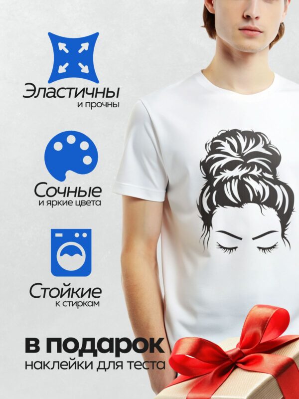 Термонаклейка на одежду DTF / Контурные глаза и губы девушки, акцент на выразительность.