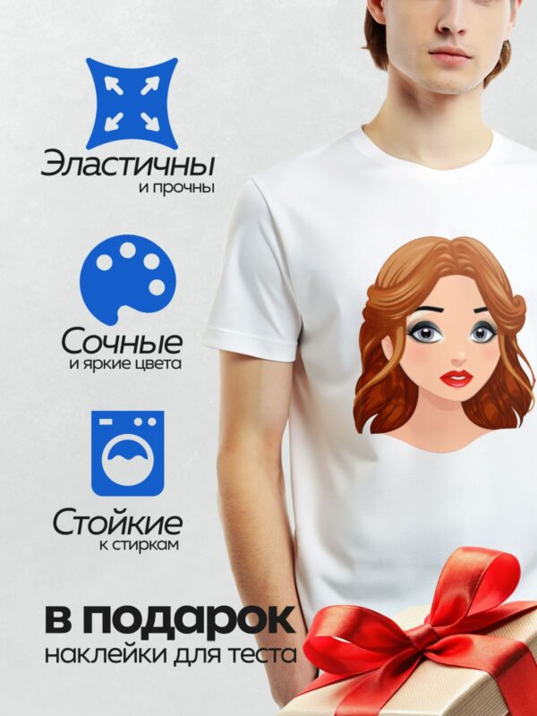 Термонаклейка на одежду DTF / Мультяшная блондинка с голубыми глазами и улыбкой.